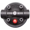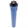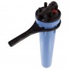 - Gehäuse in transparentem Styrol-Acrylnitril (SAN) mit blauer Kappe, zur Kontrolle des Durchfluss und der Filterkartusche bzw. Filterkerze auf Verschmutzung