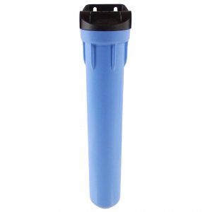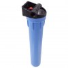 - Gehäuse in transparentem Styrol-Acrylnitril (SAN) mit blauer Kappe, zur Kontrolle des Durchfluss und der Filterkartusche bzw. Filterkerze auf Verschmutzung